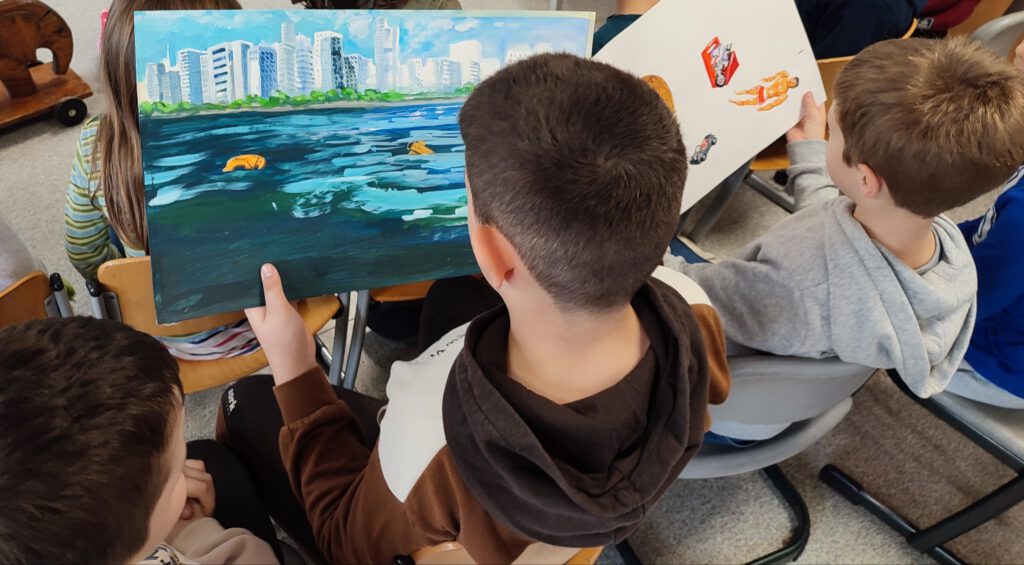 Zusätzlich brachte sie ihre Original-Illustrationen mit, die die Kinder sehr begeisterten.