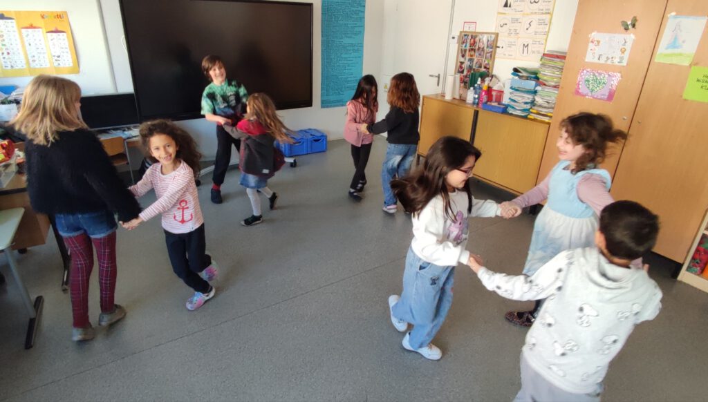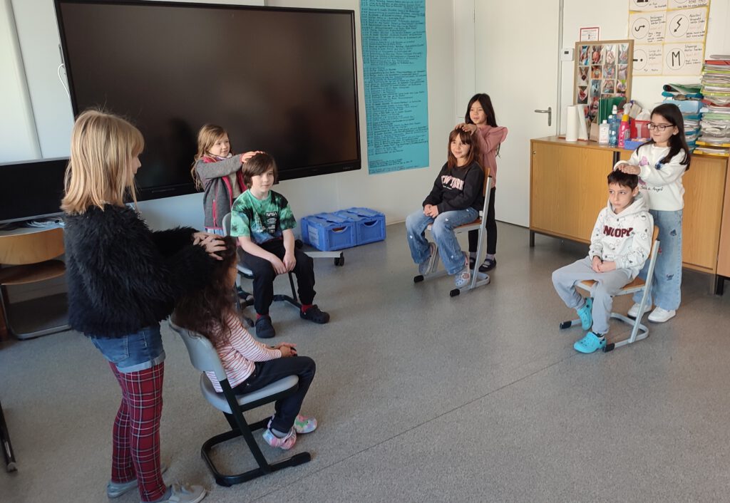 In dieser Gruppe stand der Zusammenhang von Bewegung, Körpergefühl und Gesundheit im Mittelpunkt. Die Kinder lernten verschiedene Bewegungslieder kennen, bei denen sie sich zur Musik bewegen, tanzen und gemeinsam aktiv sein konnten. Gleichzeitig wurde auch darauf geachtet, dass der Körper nach Bewegung wieder zur Ruhe kommt. Mit kleinen Entspannungsübungen, Fantasiereisen und ruhigen Atemübungen erfuhren die Schülerinnen und Schüler, wie wichtig Pausen und Entspannung für den Körper sind. Viele Kinder stellten fest, dass sie sich nach Bewegung und anschließender Ruhephase besonders konzentriert und ausgeglichen fühlen.