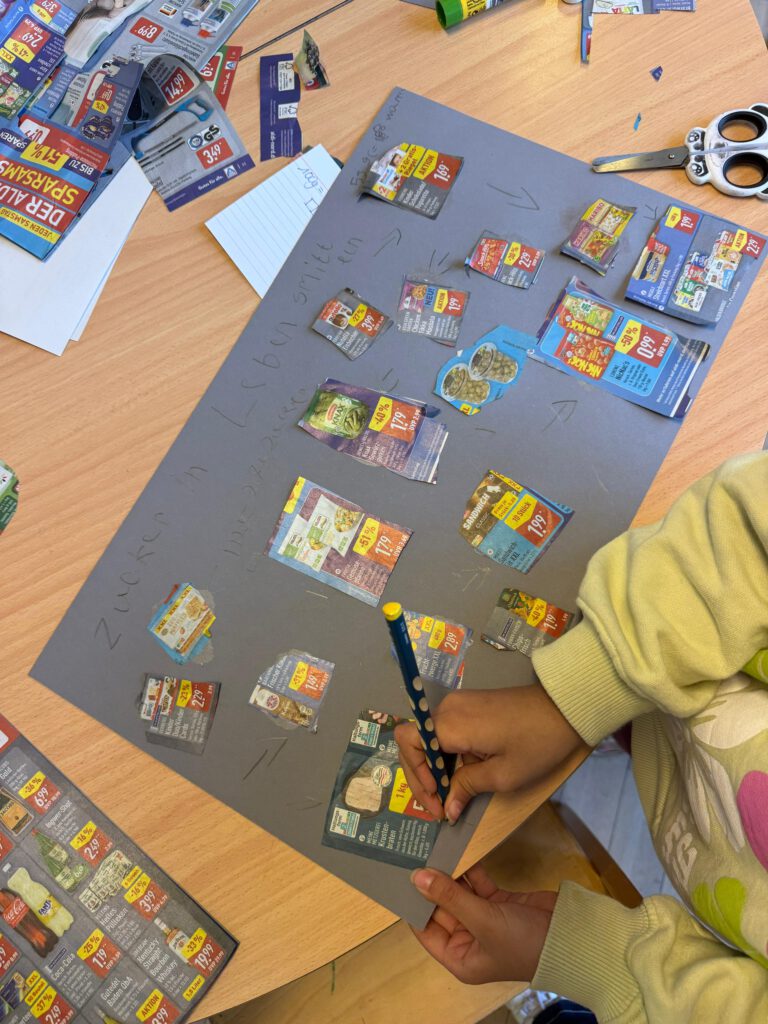 In der Gruppe der „Lebensmittel-Detektive“ gingen die Kinder auf Spurensuche im Supermarktalltag. Sie untersuchten verschiedene Lebensmittelverpackungen, lernten Zutatenlisten kennen und fanden heraus, welche Lebensmittel besonders gesund sind und welche eher selten gegessen werden sollten. Dabei wurde gemeinsam überlegt: Wo verstecken sich Zucker, Fett oder Zusatzstoffe? Die Kinder lernten, genauer hinzuschauen und bewusster zu entscheiden, was sie essen.