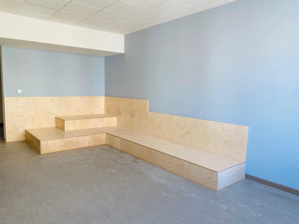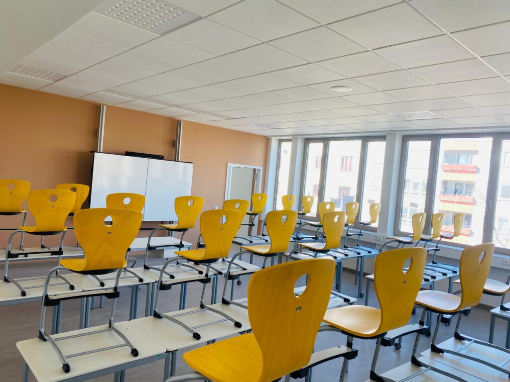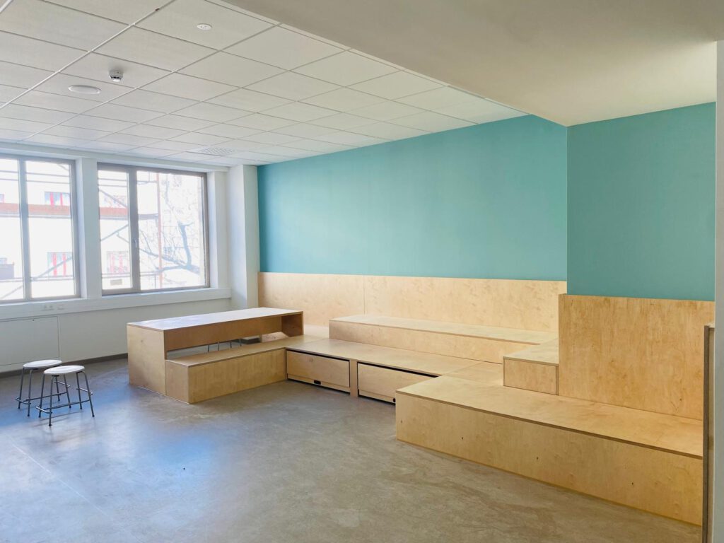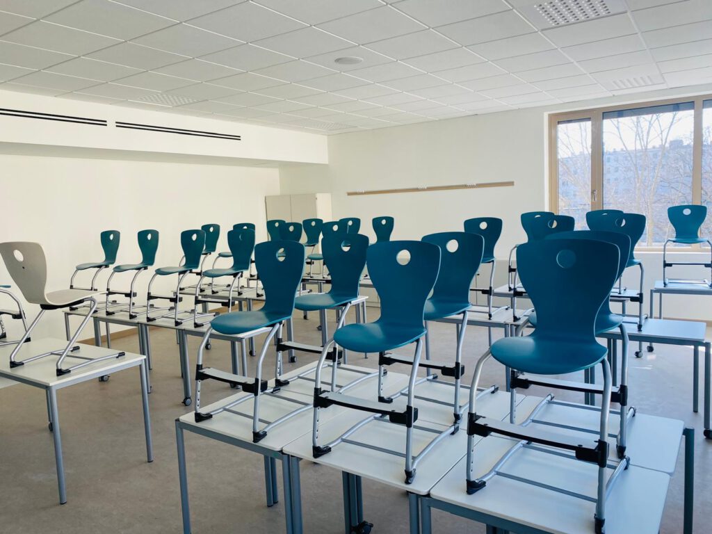 đ§ Der Innenausbau schreitet in rasantem Tempo voran: Bereits jetzt sind viele MöbelstĂŒcke wie StĂŒhle, Tische und SchrĂ€nke aufgebaut. Auch die interaktiven Tafeln sind schon installiert.