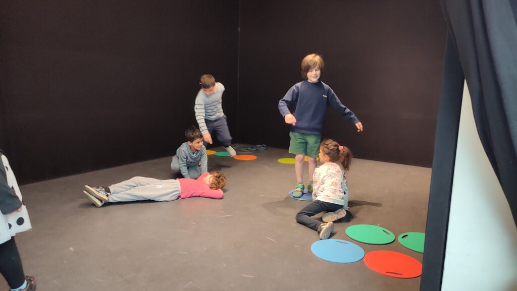 Ebenfalls viel Freude hatte die andere Gruppe mit dem Schauspieler Tuncay Gary in der Theater- und Literaturwerkstatt. Die Kinder setzten sich mit dem Buch und der Musik von „Peter und der Wolf“ auseinander und spielten die Szenen der Geschichte nach.