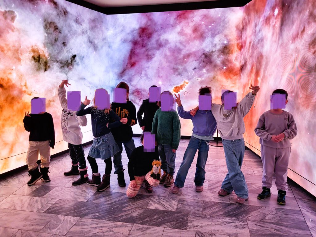 Dank der Kieztiger ging es für unsere JÜL und SAPH-Klassen auf eine spannende Reise ins Weltall. Im Planetarium an der Prenzlauer Allee begaben sich die Kinder auf eine interaktive Abenteuerreise zu den acht Planeten unseres Sonnensystems. Vom kleinen Merkur über die glühend heiße Venus bis hin zum roten Planeten Mars erfuhren sie, warum jeder Himmelskörper so einzigartig ist. Anschließend führte die Weltraumtour zu den Riesenplaneten Jupiter mit seinen vielen Monden und Saturn mit seinen beeindruckenden Ringen – bis hinaus in die eisigen Regionen unseres Sonnensystems, wo die Sonne nur noch als kleiner, heller Punkt am Himmel erscheint.