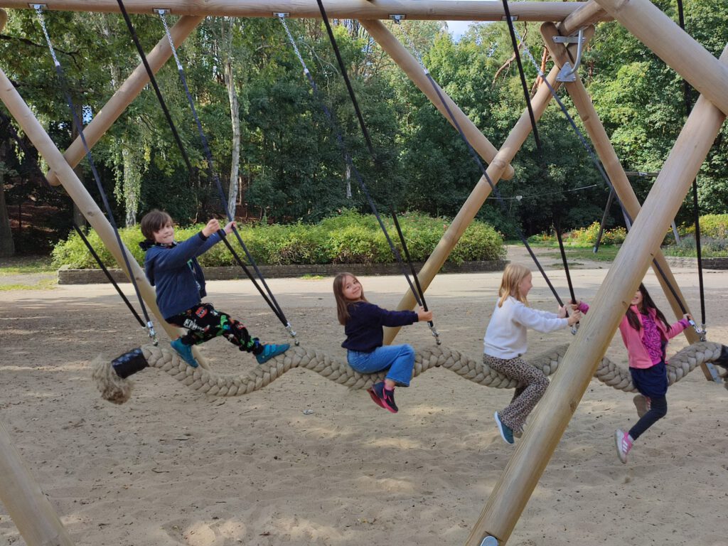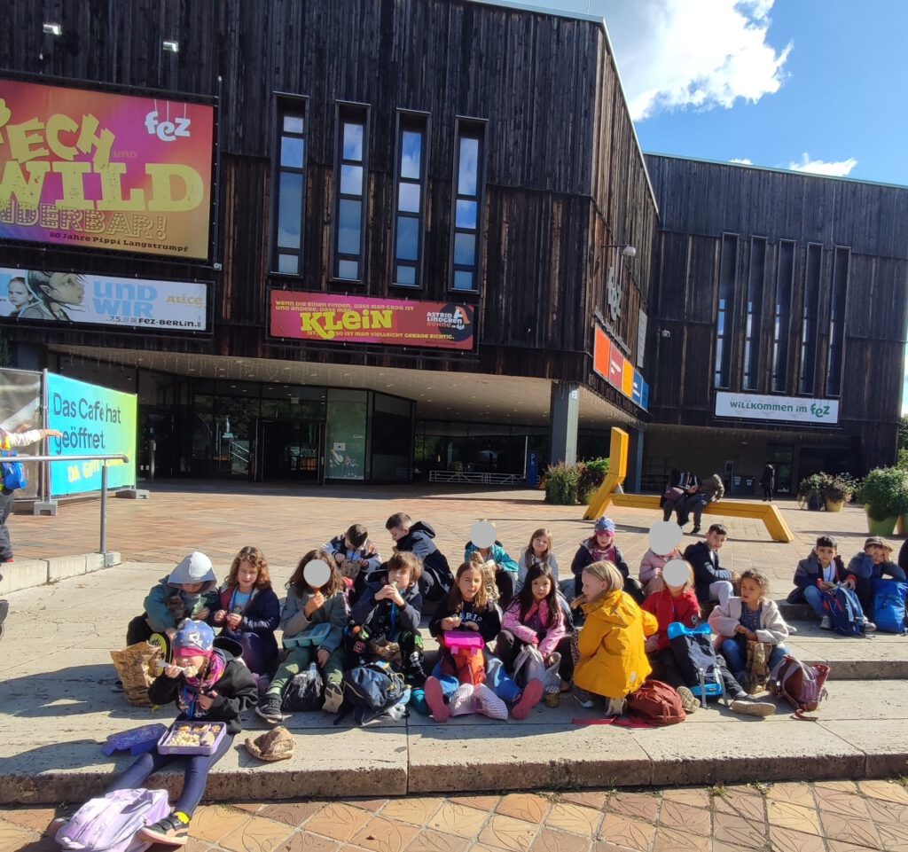 Nach dem Konzert gab es eine Essenspause vor dem Gebäude. Danach konnten wir noch das Gelände vom FEZ mit den großen Spielplätzen erkunden, bevor uns der Kulturbus wieder sicher in die Schule zurückfuhr.