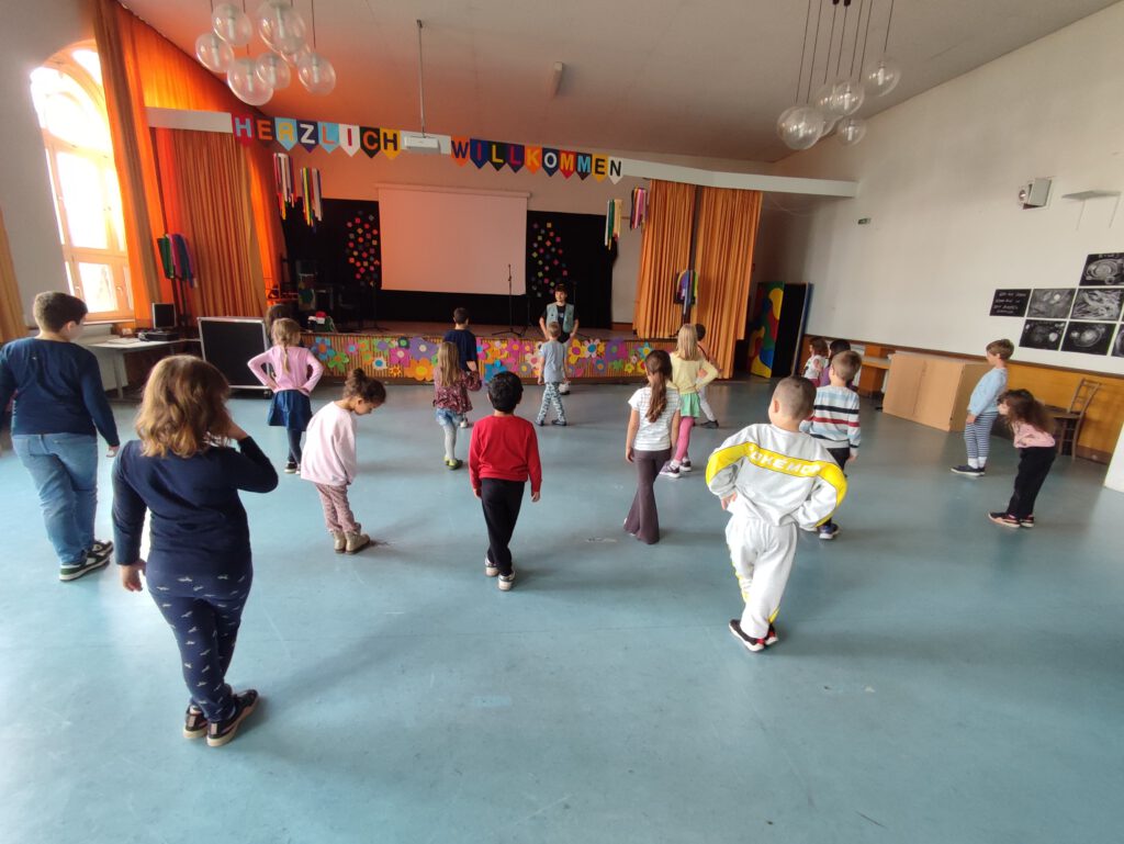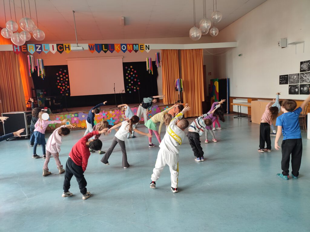 In Zusammenarbeit mit professionellen Tanzpädagog*innen – unter anderem aus dem Netzwerk der Flying Steps – führen wir regelmäßig Tanzprojekte, Workshops und Bühnenauftritte durch. Die Kinder erleben Tanzstile wie Hip-Hop, Breakdance oder kreative Improvisation hautnah und können ihre Bewegungsfreude in einem geschützten Rahmen entfalten.